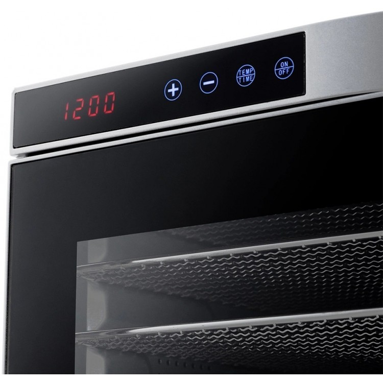 Качественная сборка, металлические поддоны, равномерная сушка без смешения запахов, тихая работа, удобное сенсорное управление, большой объём — все 10 уровней реально использовать. Есть поддоны для пастилы и ягод, стеклянная дверца, стильный вид.