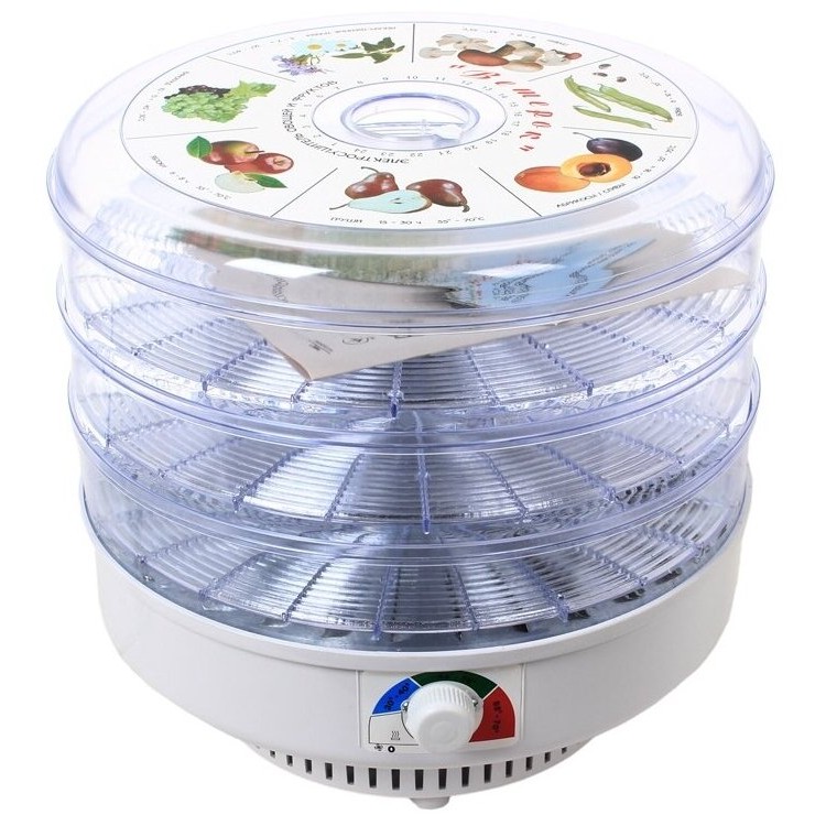 3 съёмных поддона из прозрачного пластика вмещают до 5 кг продуктов. Вы сможете одновременно сушить разные продукты, не смешивая их запахи.