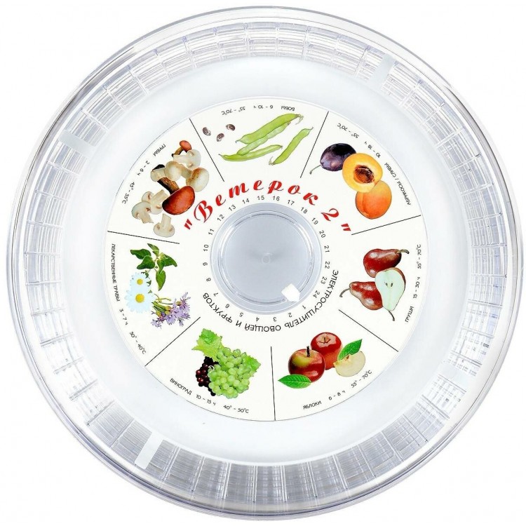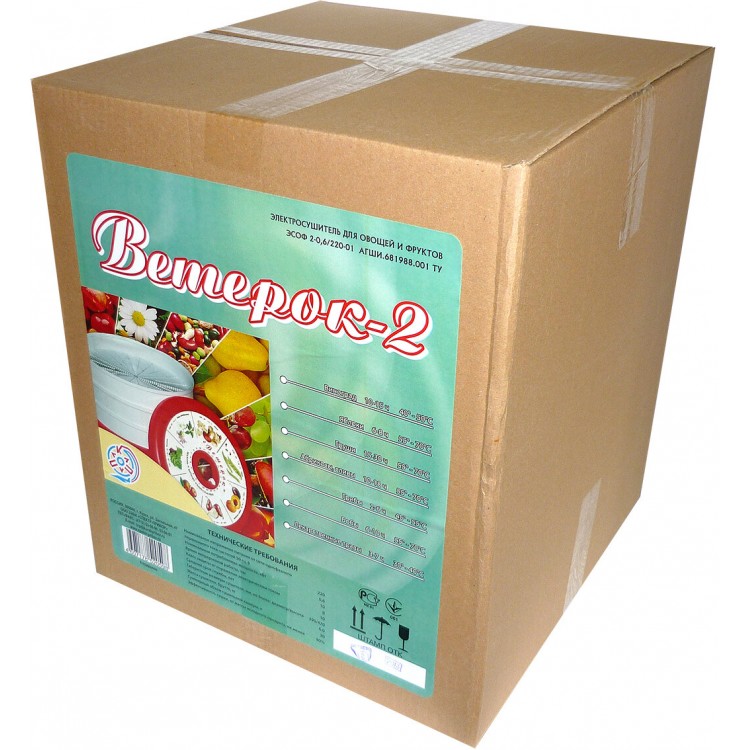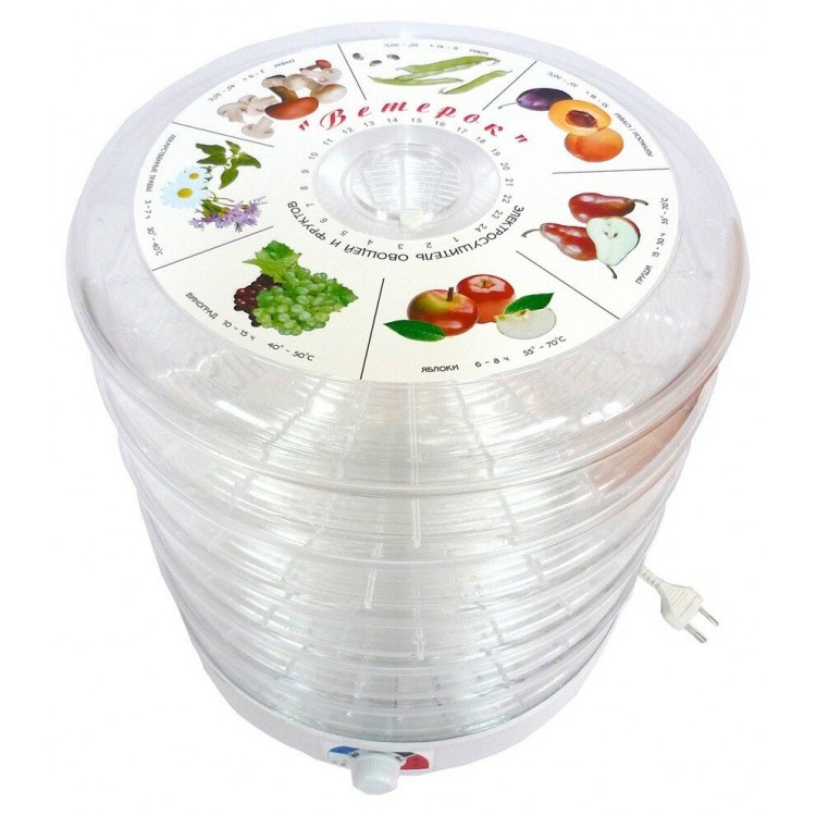 | Особенности | защита от перегрева, Изделие для производства домашних заготовок сухофруктов, а также сделать домашнюю лапшу. Позволяет загрузить единовременно до 10 кг сырья., грибов, завялить рыбу или мясо, любых трав и т.д. С помощью «Ветерка-2» можно изготовить мясные и рыбные чипсы, овощей, приготовить любые сухарики, ягод |