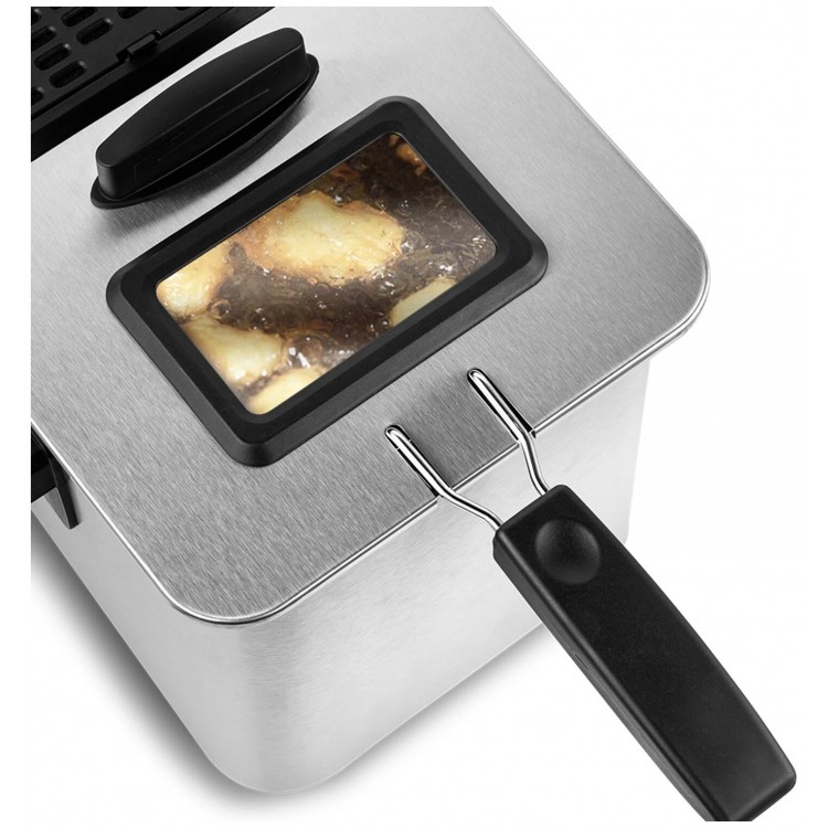 За свои деньги хорошая фритюрница. Минимальная температура 130 градусов, максимальная 190. Сама чаша съёмная, большая. Вмещает максимум 4.5л продукта. Есть смотровое окошко. Даже сам нагревательный элемент можно снять(надевается на двух защёлках) Первым делом прокипятил воду, до 130 градусов доходит примерно за 15 минут( на самом деле долго конечно), заявленная мощность 2000 ватт. Покупку рекомендую, но в след раз возьму их топовую позицию ?