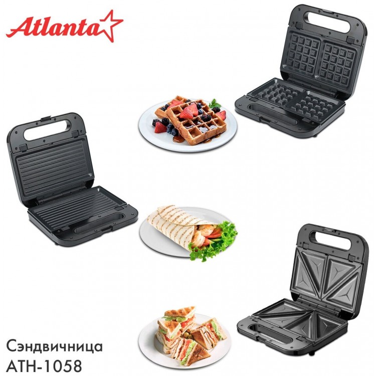 | Название | Сэндвичница Atlanta ATH-1058, 3 в 1, черный |