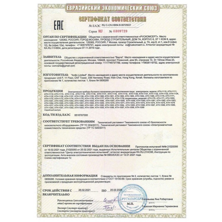 | Гарантийный срок | 1 г |