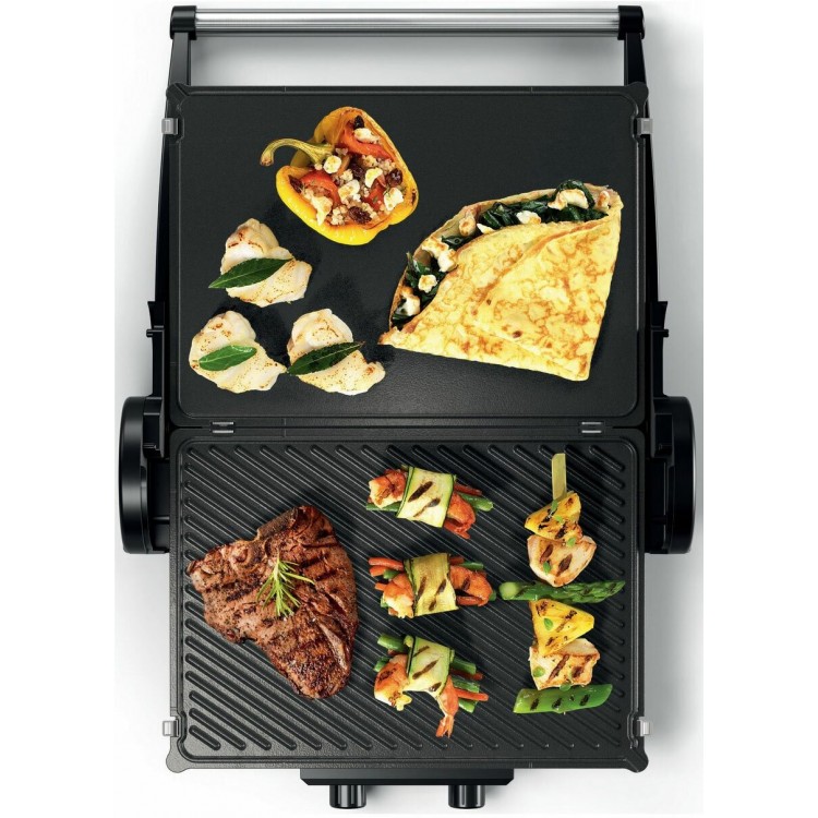 * Раскрытие на 180 градусов позволяет удобно размещать продукты на гриле.