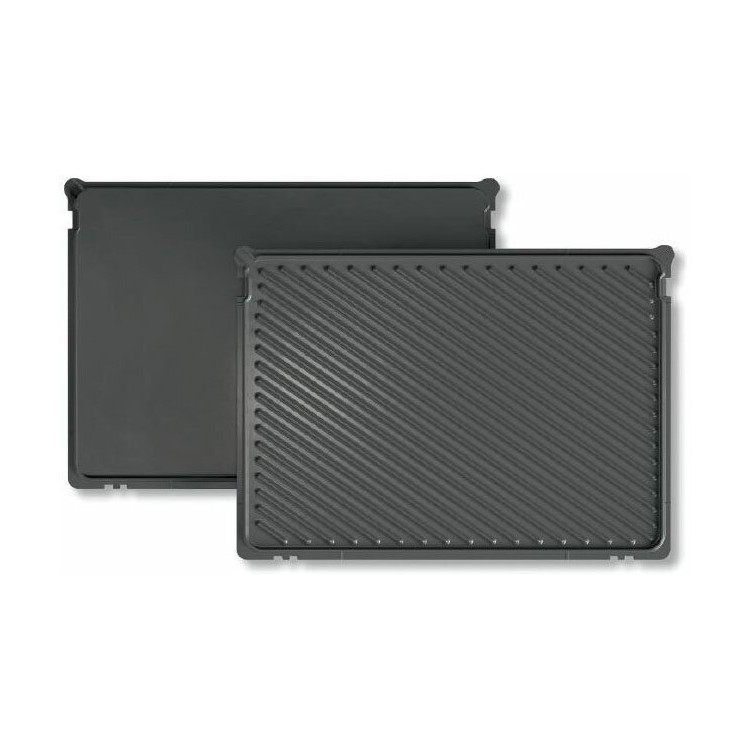 * В комплекте — пластины для гриля со стоками и двумя независимыми ёмкостями для сбора жира, а также противень для запекания.