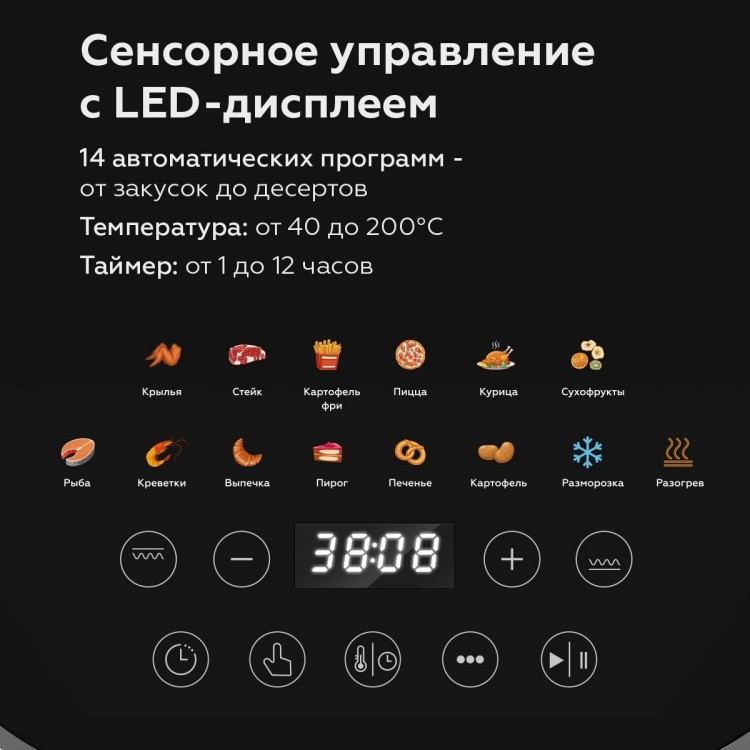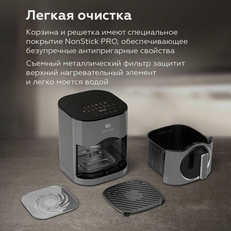 Давно уже смотрела на аэрогрили, и решила себе приобрести. Выбор пал именно на эту модель, и я осталась довольна! Понятное управление, множество программ. В плане готовки, происходит все быстро - по итогу вкусно, сочно и с корочкой, где она необходима. Процесс приготовления без добавления масла, антипригарное покрытие, не дает блюду пригореть и сгореть. Теперь это главный помощник на нашей кухне.