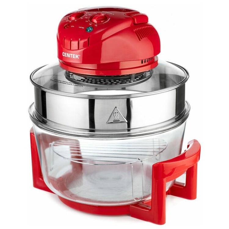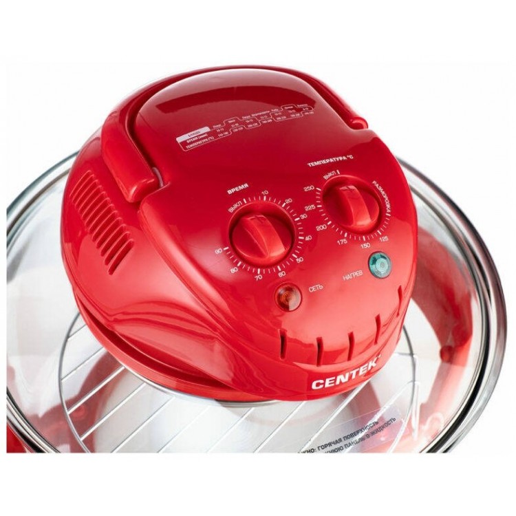Название Аэрогриль CENTEK CT-1456, красный [ct-1456 red]; Бренд CENTEK; Цвет товара Красный; Мощность 1400 Вт; Тип Аэрогриль; Тип управления Механическое; Тип нагревательного элемента ТЭН; Объем чаши 17 л; Максимальное время установки таймера 1.5 ч; Регулировка температуры Да; Регулировка скорости конвекции Нет; Тип крышки Съемная; Особенности 3D-турбонагрев, LED-индикаторы работы, Надежный стальной тэн, Съемный VDЕ-шнур, Чаша из закаленного стекла; В комплекте Средняя решётка, щипцы-ухват; Длина сетевого шнура 1.2 м; Дополнительная информация 3D-турбонагрев, LED-индикаторы работы, Надежный стальной тэн, Съемный VDЕ-шнур, Чаша из закаленного стекла; Высота 360 мм; Ширина 398 мм; Глубина 230 мм; Вес 5.41 кг; Цвет красный;