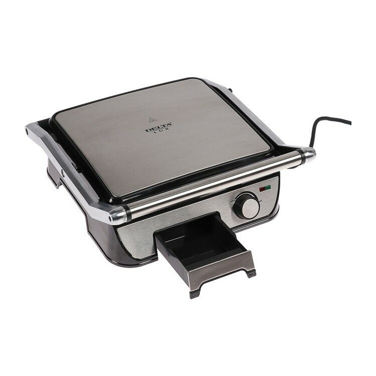 Название Гриль электрический DL-051 2200 Вт, серебристый; Бренд DELTA; Цвет товара Серебристый; Тип Гриль; Управление Механическое; Мощность 2200 Вт; Материал корпуса Сталь; Материал рабочей поверхности Металл; Особенности Раскрытие на 180°, антипригарное покрытие, поддон для сбора жира, контактный гриль, регулировка наклона; Управление со смартфона Нет; Дополнительные функции Защита от перегрева, регулировка температуры; Дополнительная информация Съемные панели; рабочая поверхность 29,5х23,5 см; режим работы верхней части как самостоятельной рабочей поверхности; Габариты транспортной упаковки 40x39x18; Вес в килограммах с учетом упаковки 4.4; Срок службы 3 лет; Гарантийный срок 1 г; Цвет серебристый;