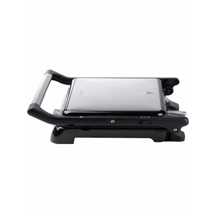 Антипригарное покрытие предотвращает прилипание продуктов, а поддон для сбора жира упрощает очистку гриля после использования. В комплекте идёт 1 шампур, а закрытый нагревательный элемент, расположенный сверху и снизу, позволяет равномерно распределять тепло.