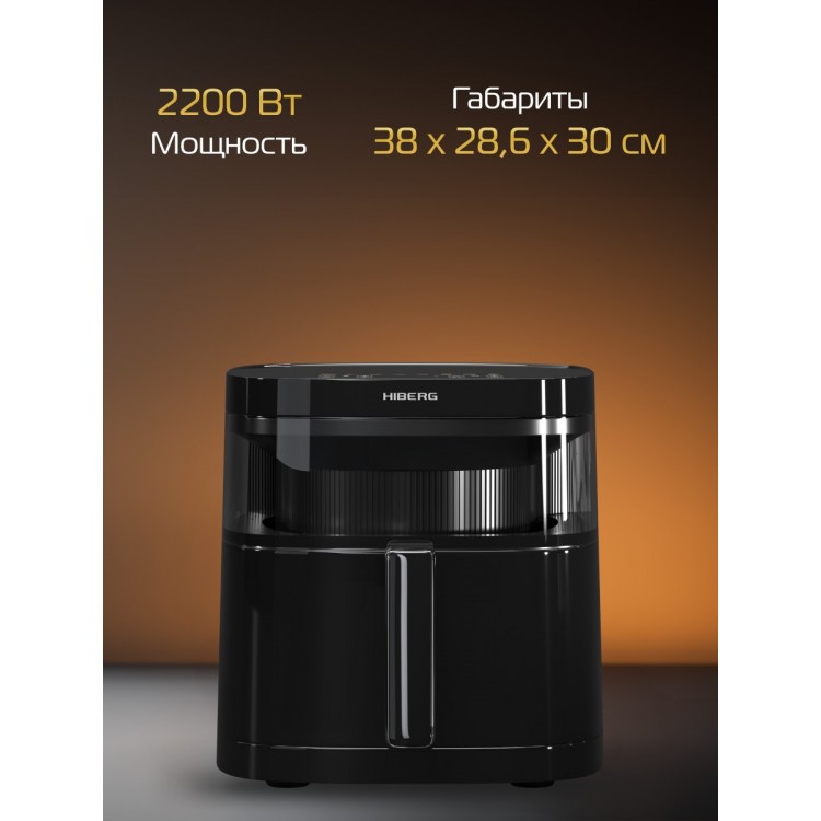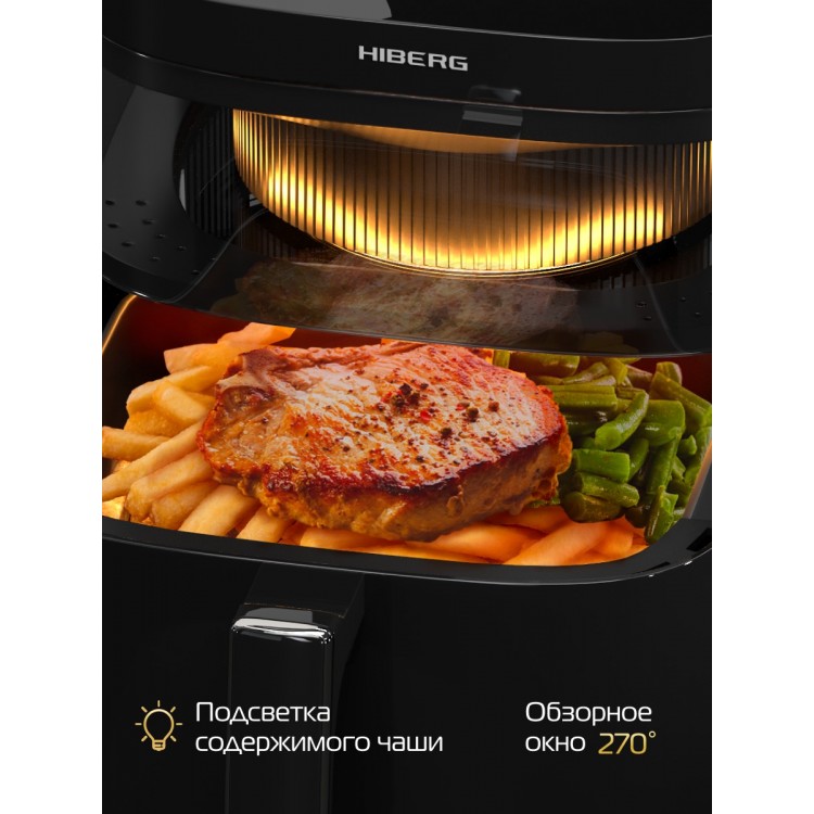 | Название | Аэрогриль HIBERG MGG 600 B, объем 5.8 л, 2200 Вт, 9 программ, антипригарное покрытие, цвет чёрный |