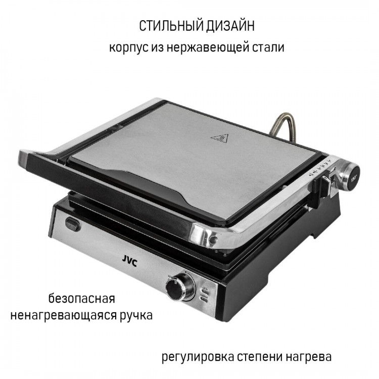 В гриле JVC JK-GR306 есть всё необходимое для комфортного приготовления: