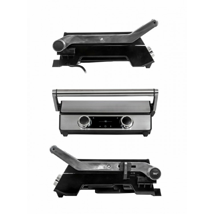 | Особенности | антипригарное покрытие, поддон для сбора жира, съемные пластины, Раскрытие на 180°, раскрытие на 180°, съемная жарочная поверхность |