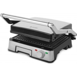 Антипригарное покрытие. крышка. поддон для сбора жира. регулировка высоты верхней панели. съемные пластины. Раскрытие на 180°. автоматическое отключение. регулировка температуры