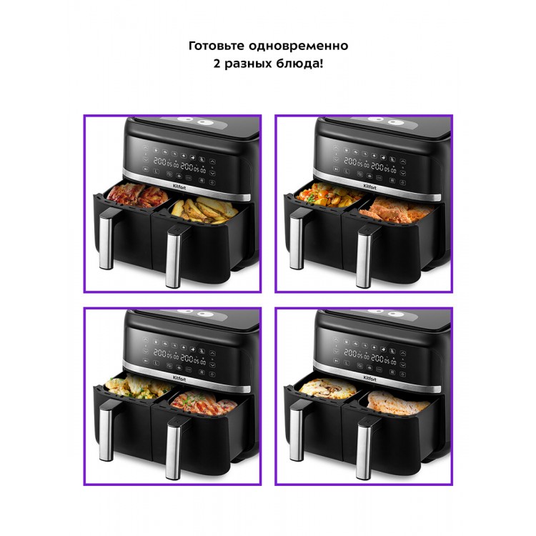 | Дополнительная информация | 2 корзины с 2 модулями управления, можно готовить сразу 2 разных блюда при разных настройках |