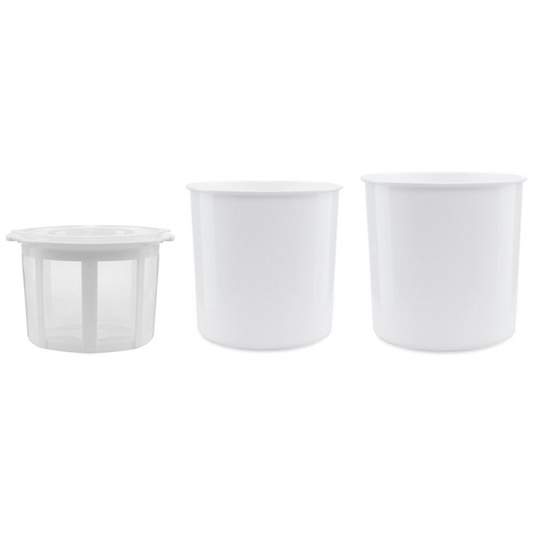 Йогуртница белая состоит из контейнера с крышкой, чаши (1,4 л), ведро для слива сыворотки и сито , инструкции с рецептом. По качеству прибор приятный, запаха нет, места занимает мало. Молоко лучше брать 3,2 или большей жирности, и получится натуральный йогурт, над немного приноровиться с временем и пропорциями, а в остальном советую к покупке