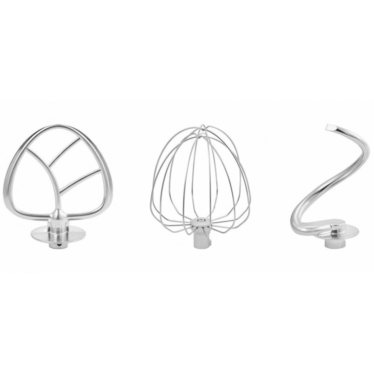 Материал чаши — нержавеющая сталь, материал корпуса — металл и пластик. В комплекте вы найдёте всё необходимое: чаша с ручкой, крышка чаши, венчик для взбивания, крюк для замешивания, насадка для смешивания, книга рецептов и руководство для эксплуатации с гарантийным талоном.