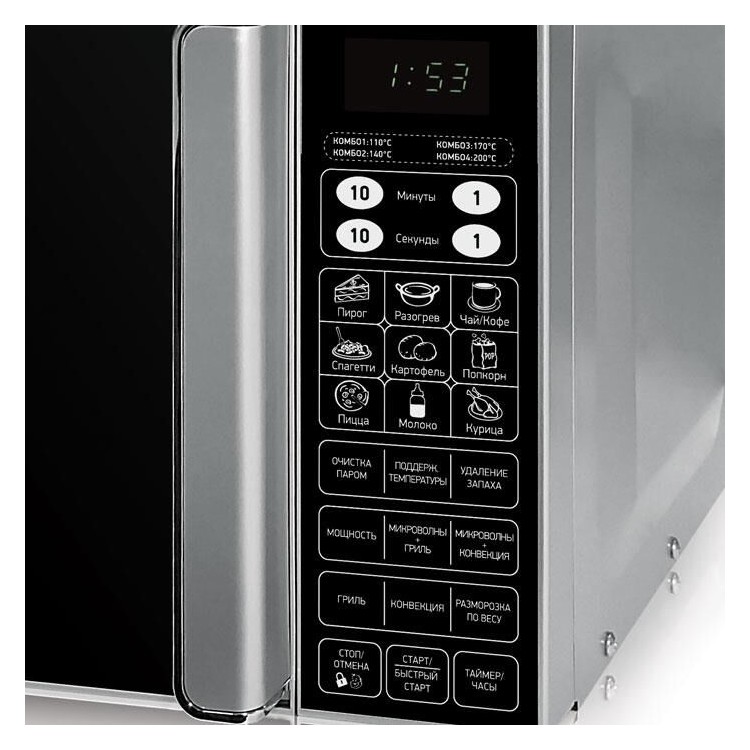 Очень красивая стильная СВЧ печь. Быстро греет.