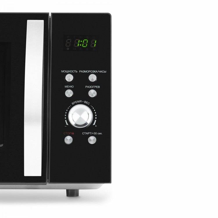 Микроволновая печь оснащена дисплеем и понятным управлением, которое позволяет легко выбрать нужный режим и настроить время.