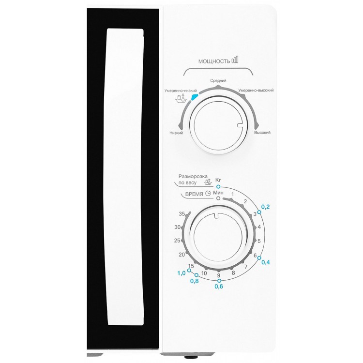 Круглое окошко в дверце;Механическое управление;Функция разморозки;Таймер на 30 минут;Легко очищается от загрязнений.