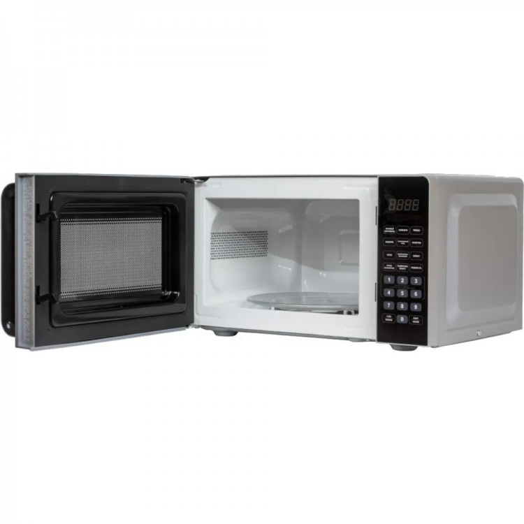 Эта стильная и функциональная модель выполнена в серебристом цвете, который гармонично впишется в любой интерьер. С её помощью вы сможете быстро и легко разогреть еду, разморозить продукты или приготовить вкусные блюда.