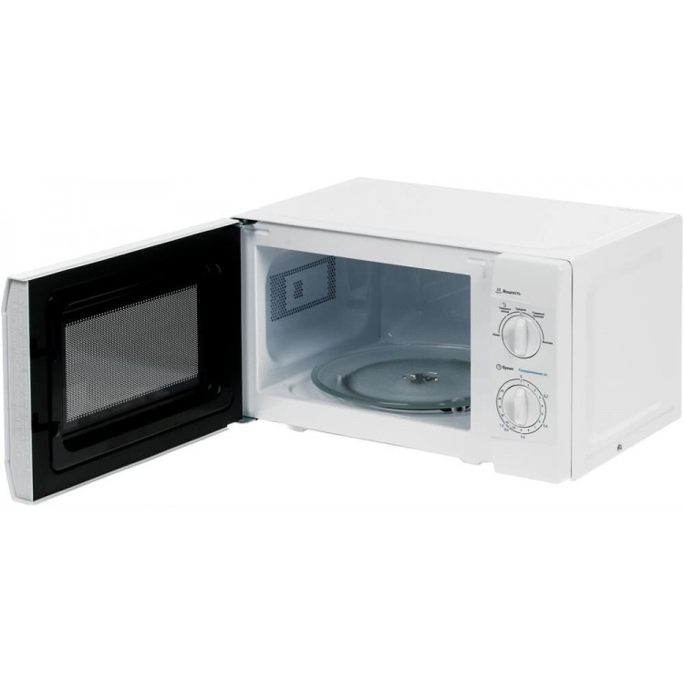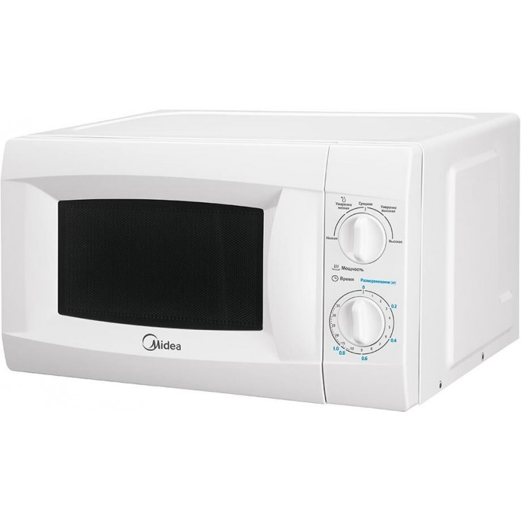 Простая с механическим управлением микроволновая печь. Дверца закрывается на защёлку - кнопка не сломается из-за отсутствия последней.
