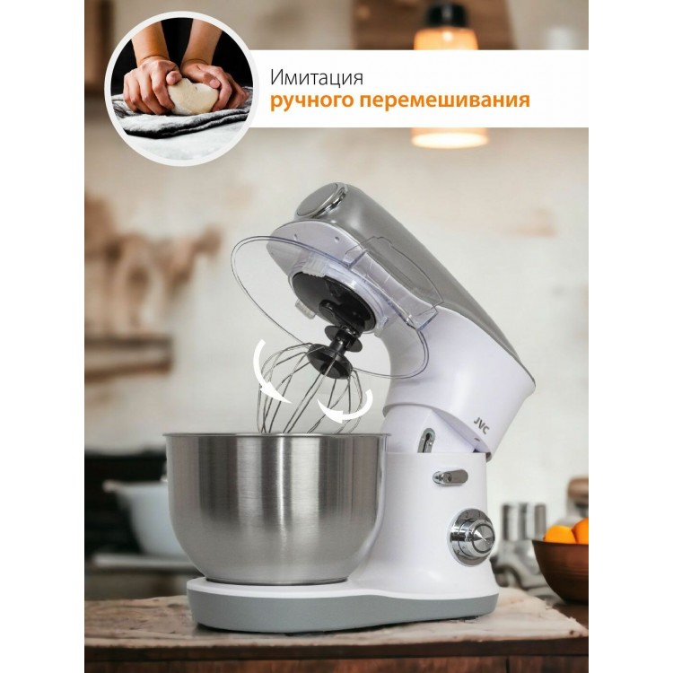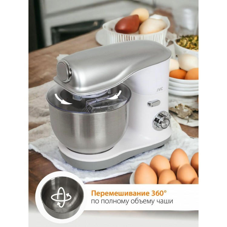 | Название | Миксер планетарный JVC JK-MX510 silver с чашей 5,2 литра из нержавеющей стали, импульсный режим, 6 скоростей, 3 насадки, 1200 Вт |