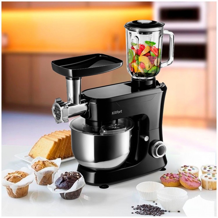 Очень удобная вещь. Давно планировали купить. Уже успели затестить мясорубку. Всё работает отлично. Так же из мяса сделали колбаски, а приготовили их в аэрогриле Kitfort. В миксере делали смузи и молочные коктейли. Удобно, что в миксере два ножа, которые крутятся в противоположные стороны. Чаша миксера из толстого стекла, что огромный плюс. Так же, готовили тесто. В общем, мы долго выбирали. В этой модели нам подошло абсолютно все. Рекомендую! У нас от Kitfort есть аэрогриль, автоматические мельницы, кофемолки 2шт, кофемашина рожковая, планетарка, чайник, тостер. Сейчас присматриваем мороженницу и вакууматор.