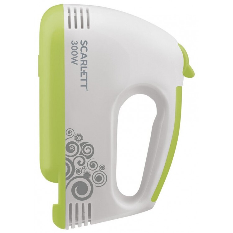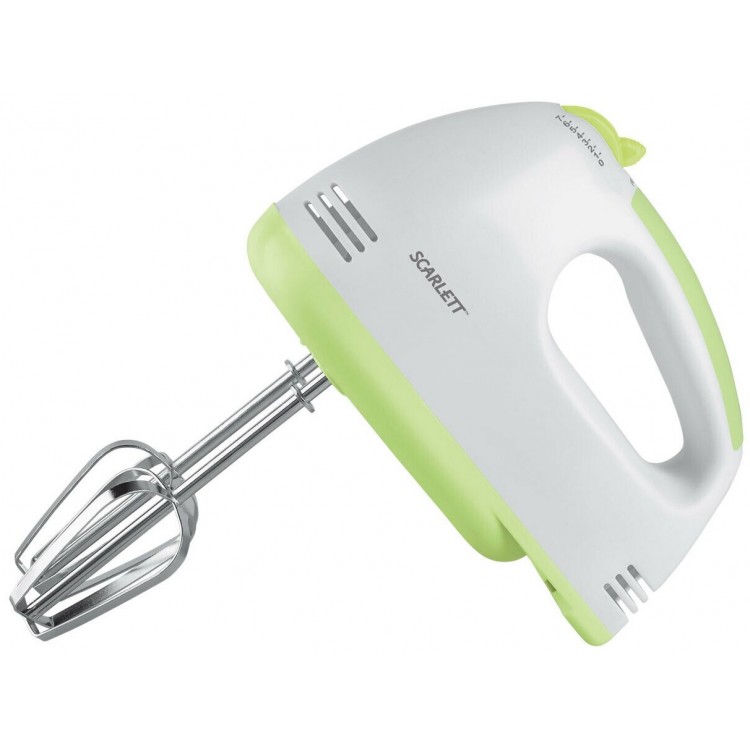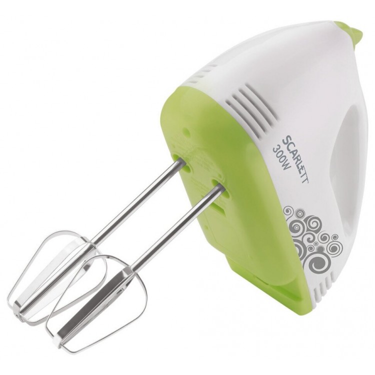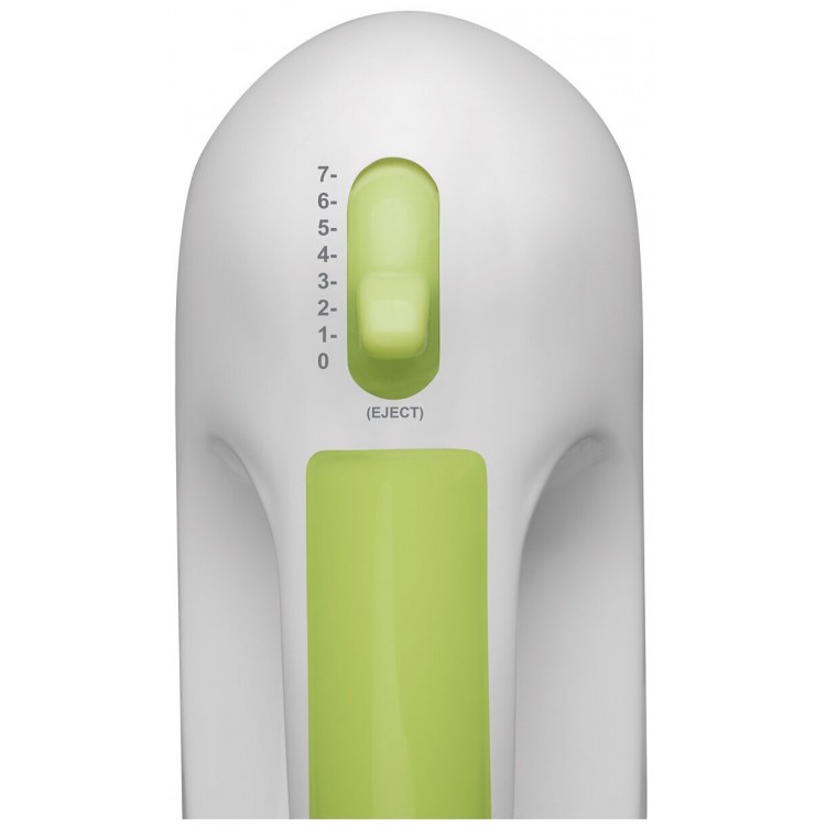 Люблю, когда техника с изюминкой. Миксер беленький, но с зелеными деталями, очень приятно смотрится. По работе нравится то, что семь скоростей, можно смешивать и взбивать аккуратно, не забрызгивая все вокруг. Насадки кнопкой легко отсоединяются.