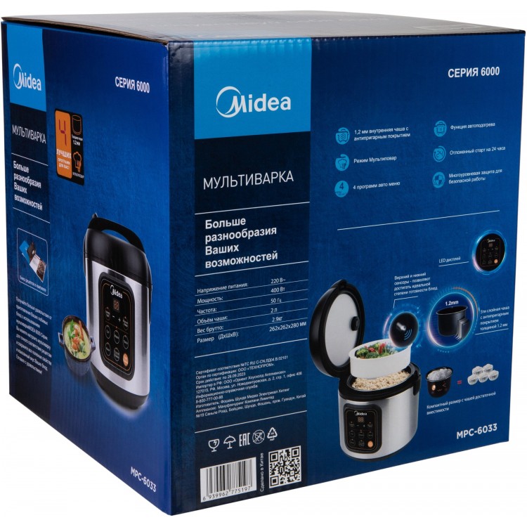 маленький компактный, для меня идеальный размер, функция мултиповар радует что можно готовить любое блюдо.