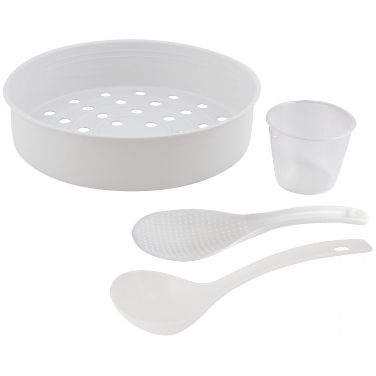 В комплекте с мультиваркой идут необходимые аксессуары: столовая и плоская ложки, мерная чаша и книга с рецептами.