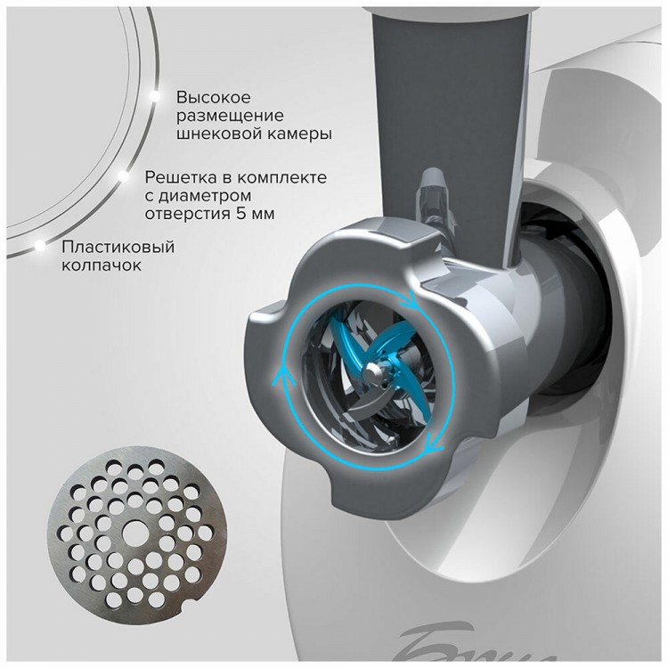 - Производительность: 1.3 кг/мин, что позволит быстро и эффективно перерабатывать мясо.