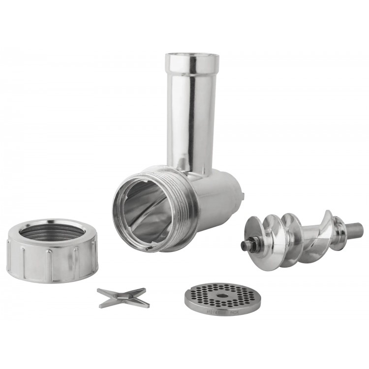 * Насадки: в комплекте идут диск для фарша, насадка для кеббе и насадка для приготовления колбас. Также есть 3 перфорированных диска.