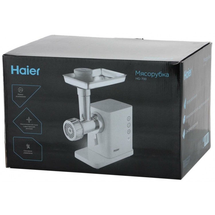 | Название | Электрическая мясорубка Haier HG-700, 1900 Вт, корпус из алюминия, белый |