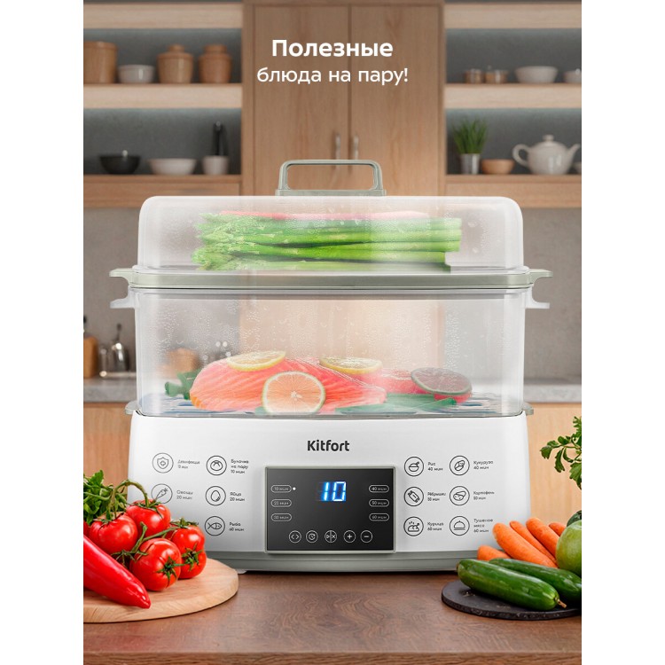 Хотите готовить вкусные и полезные блюда? Пароварка Kitfort КТ-6431 — то, что вам нужно!