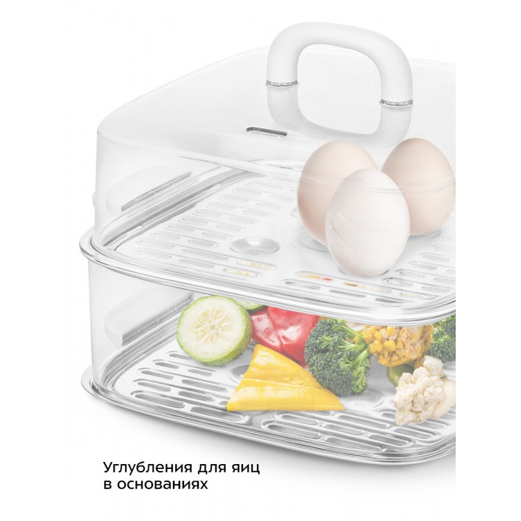* Корпус и паровые корзины из прозрачного пластика — удобно контролировать процесс приготовления.