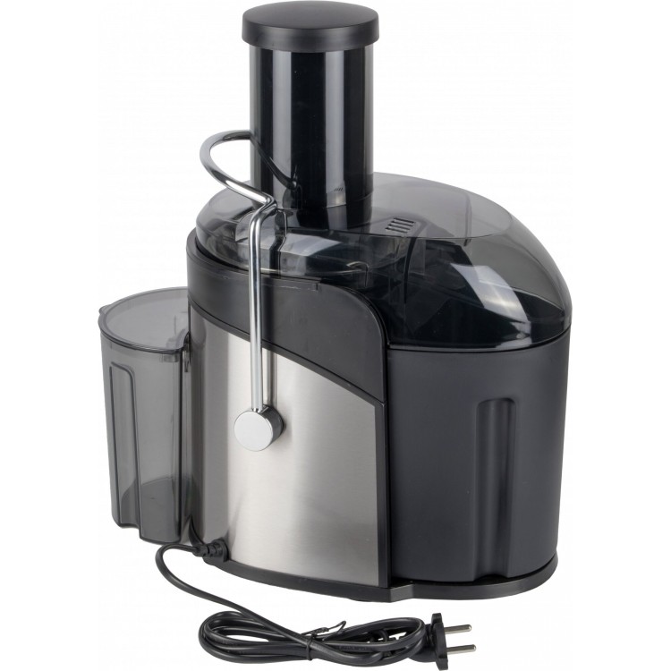 Соковыжималка изготовлена из нержавеющей стали и пластика, что обеспечивает долгий срок службы. В комплект входят блок соковыжималки, ёмкости для жмыха и сока, сетчатый фильтр, крышка и руководство по эксплуатации.