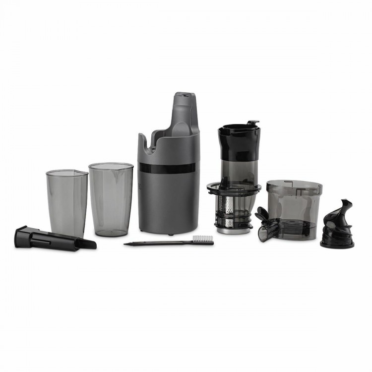 Выжимает сок сразу в стакан, сохраняя максимум витаминов за счет низких оборотов и горизонтальной конструкции шнека. У соковыжималки космический дизайн. Детали снимаются, поэтому мыть ее легко и быстро. Если вдруг застрянет кусочек яблока, морковки, апельсина или зеленушки, то есть реверс для их извлечения.
