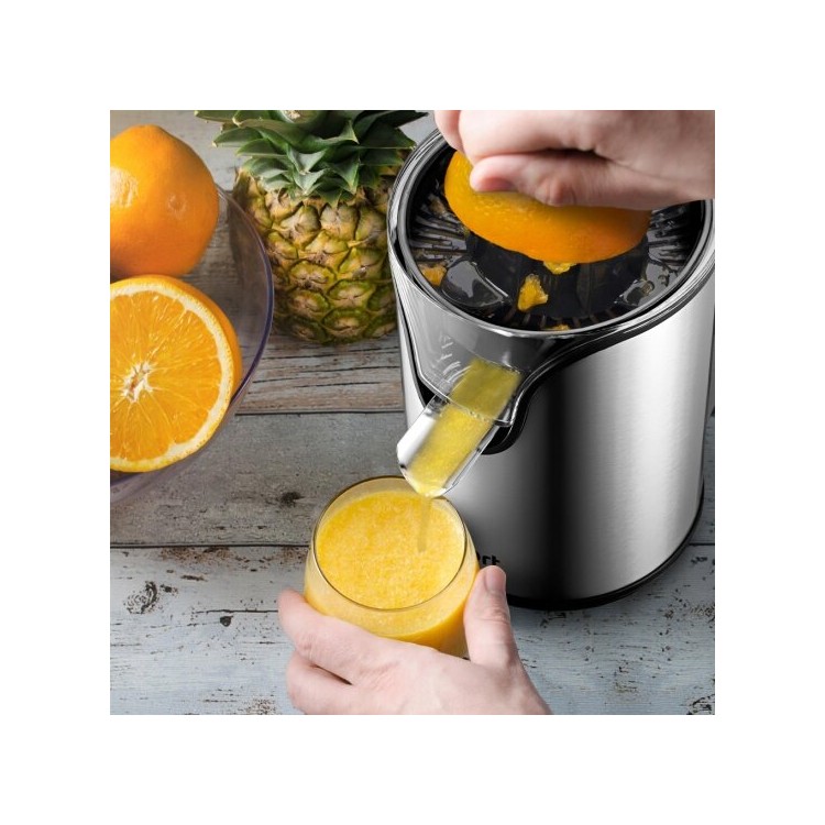 Решили купить соковыжималку для цитрусовых. Выбор пал на данную модель. Оптимальное соотношение цена-качество. В комплекте 2 насадки. Мощность достаточная. Корпус из нержавейки, хорошо сочетается с кофемолкой этой же фирмы.