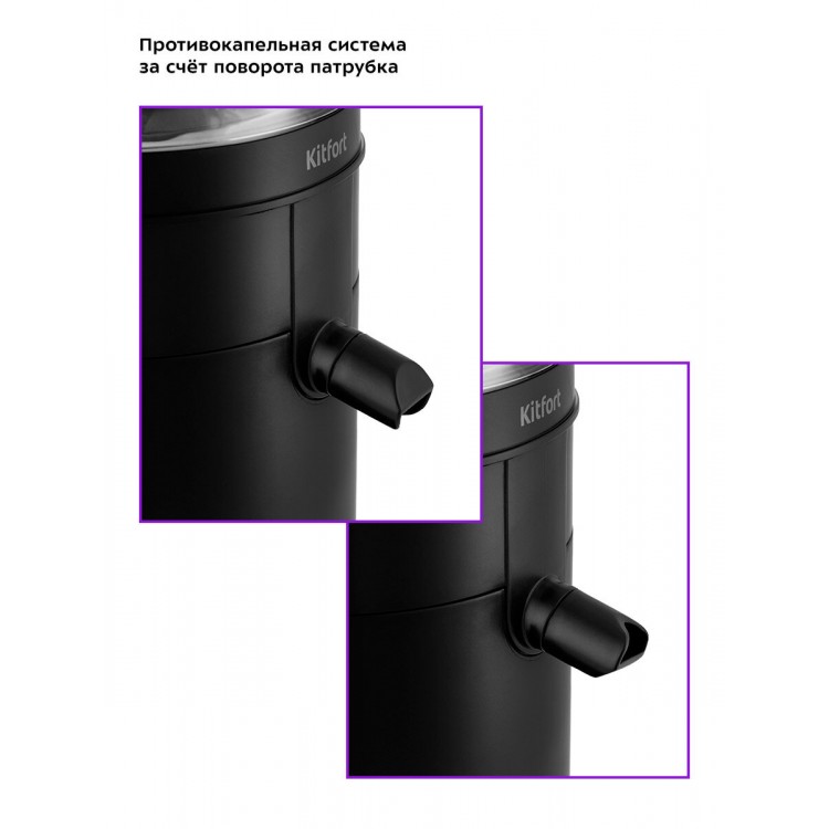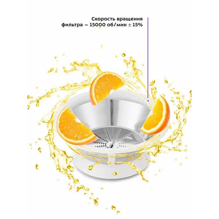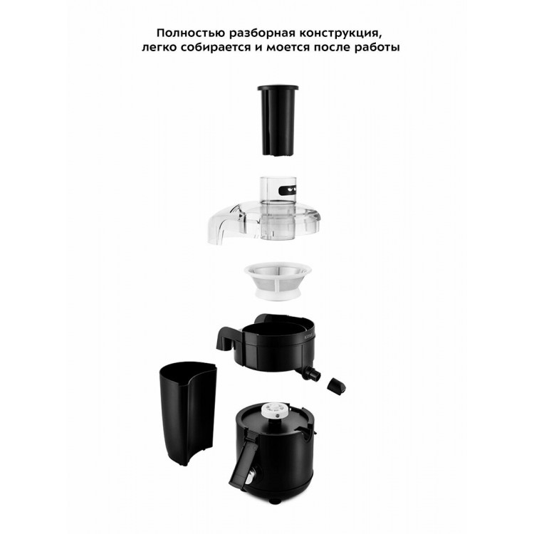 Высокая эффективность отжима — максимум сока из фруктов и овощей. Компактный и стильный дизайн, удобно хранить, легко мыть.