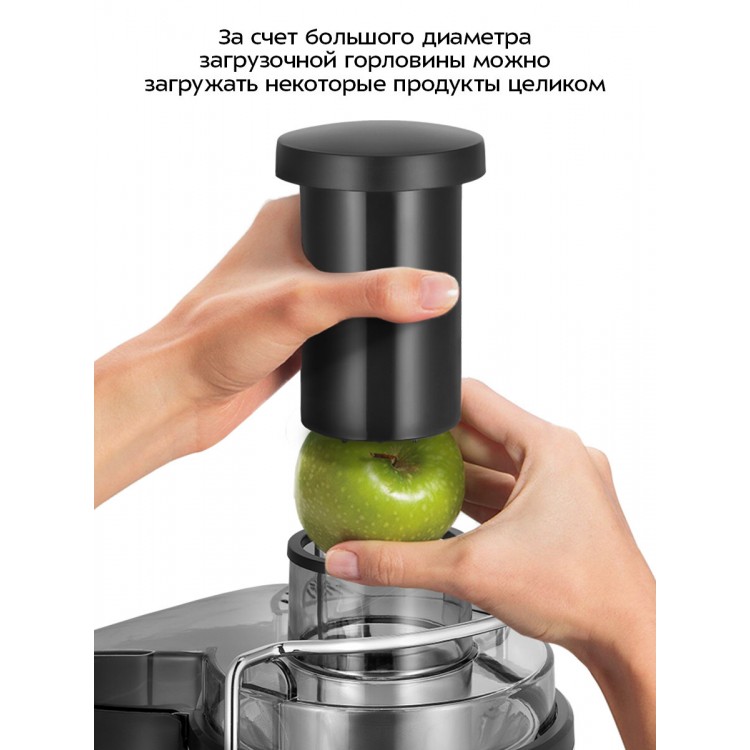Купила эту соковыжималку и не разочаровалась!! Во-первых, очень красивая, во-вторых, сок ну просто замечательный получился!! У меня было где-то 2 небольших яблока - а сока почти на бокал. Быстро, удобно, легко. А , еще горловина очень широкая, если яблоко небольшое, то даже разрезать не надо, поместится целиком