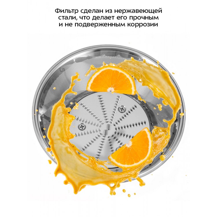 отличная соковыжималка. сок получается без мякоти, из любых фруктов. очень легко моется. полностью разборная . компактная, удобна в хранении.
