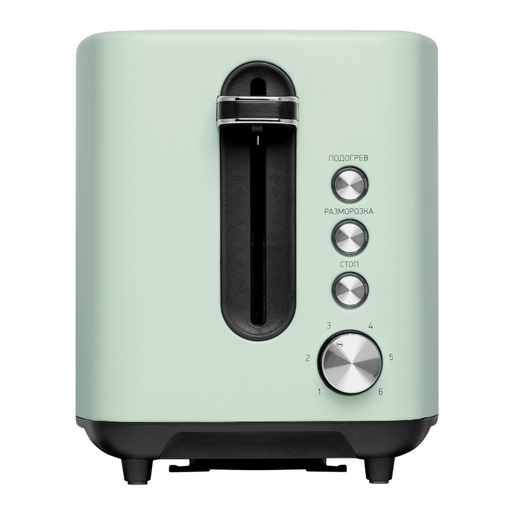 Тип управления — механический, что делает использование тостера простым и понятным. Прорезиненные ножки обеспечивают устойчивость и безопасность при работе.