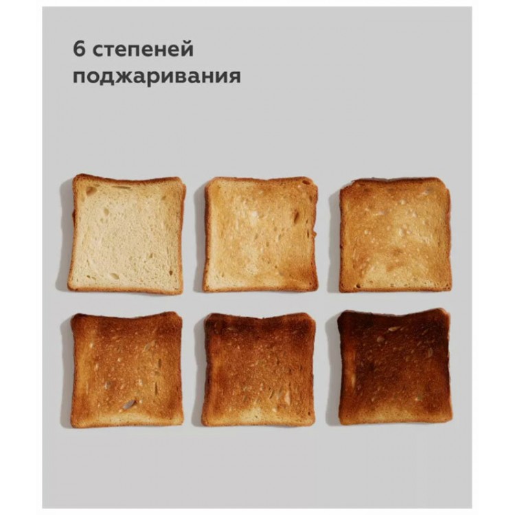 | Дополнительные функции | Автоматическое поднятие тостов, автоматическое центрирование тостов, кнопка отмены, плавная регулировка температуры |