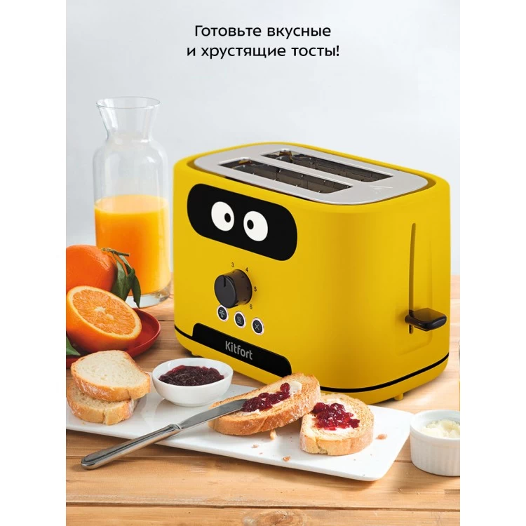 Люблю технику китфорт. Это качество. Это недорого. Это прикольный магнитик в подарок. Тостер и размораживает хлеб и поджаривает. 6 режимов поджарки. Тосты вкусняшки получаются.