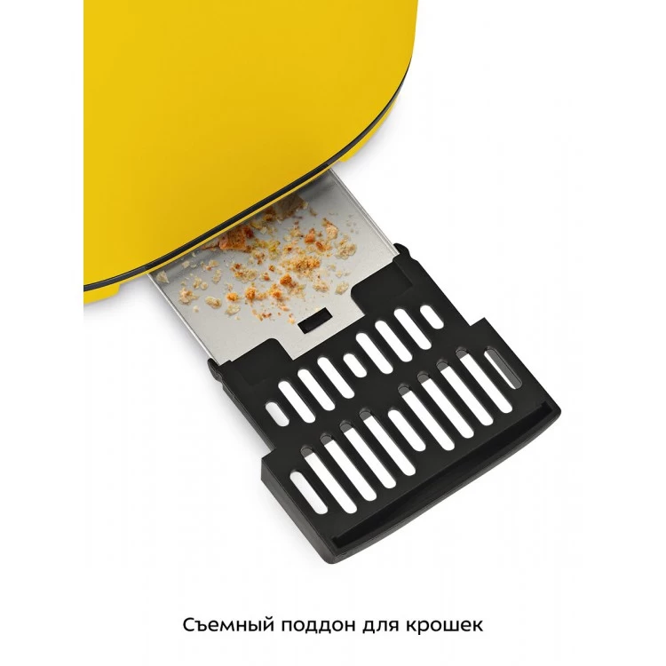 Веселый дизайн, удобные кнопки, есть выдвижной лоток для крошек, хлеб не выпрыгивает из тостера по завершению