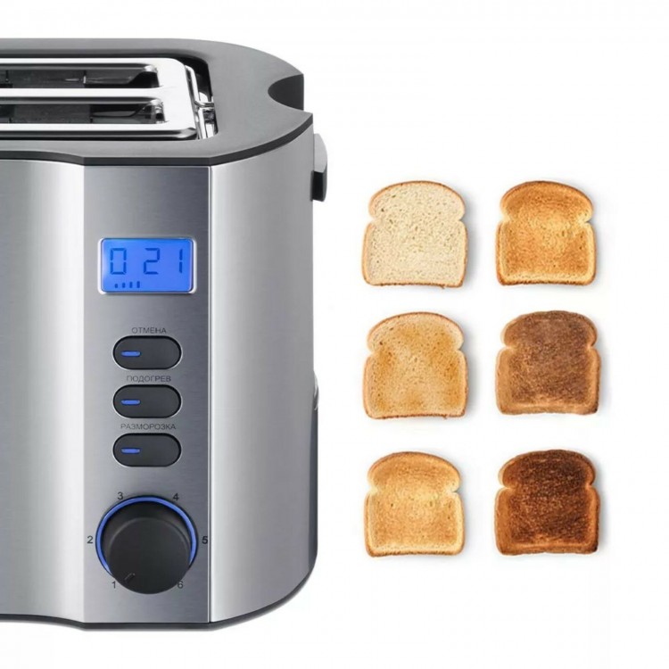 Взял тостер на замену старому, который сломали дети, да и цена порадовала.Хлеб подрумянивает равномерно, есть функции разморозки и подогрева. Но если честно, этими режимами не пользуюсь, наверное, вряд ли кому-то пригодятся, если есть микроволновка.Лоток под крошки хлипковат и выдвигается туго иногда это очень бесит. Не берите слишком тонкий хлеб, выйдут угольки, ну либо жарьте на минимальной мощности. Но в целом, для ежедневных бутербродов и быстрых завтраков более чем справляется, выглядит стильно и не разорил. За эти деньги – однозначно рекомендую.