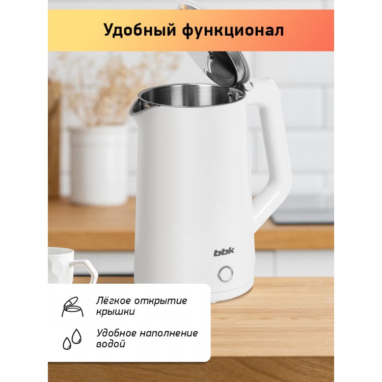 Отличный чайник в своем ценовом сегменте, внутри металлическая колба, снаружи красивый белый пластик. Надеюсь, прослужит долго.