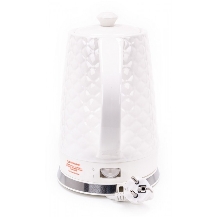 Керамика сильно нагревается, можно обжечься. И дно у него немного подтекает. Когда передвигаешь его вместе с подставкой, то из пазов подставки постоянно вылетают силиконовые заглушки. И когда чайник закипает, то может долго кипеть, если воды меньше половины чайника, плохо срабатывает датчик отключения.