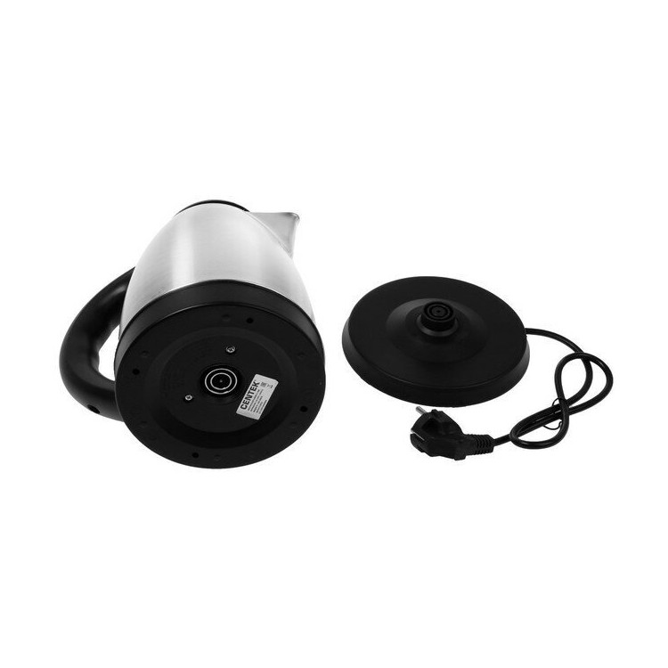 Очень короткий провод. Дно ржавеет, как у всех дешевых моделей. При снятии с подставки иногда залипает.