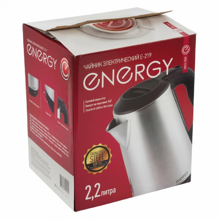 Ищете качественный электрочайник по доступной цене? Обратите внимание на Energy E-219, модель серебристого цвета.