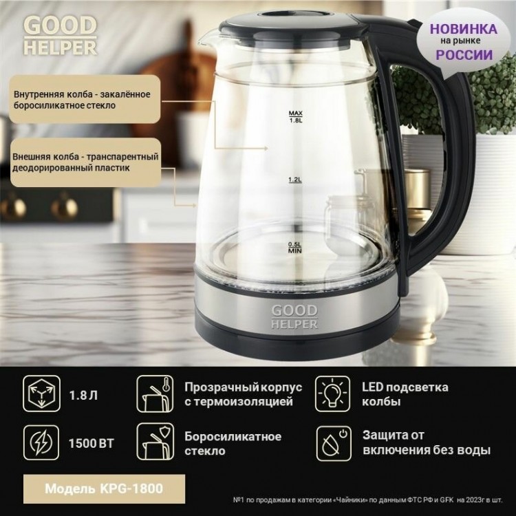 Электрочайник GOODHELPER KPG-1800 (черный/серебристый)